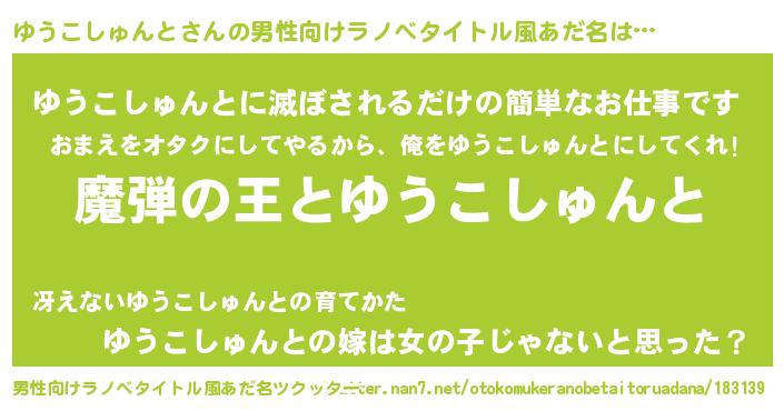 | ヒーロー風カッコイイあだ名 | 『仮面ユウダー』『幻影騎士ユウ』 |