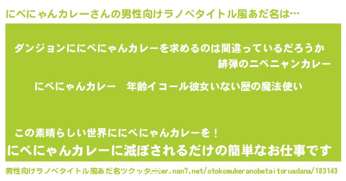 | 伝説のあだ名 | 『覚醒した遊び人にべにゃんカレー』 |