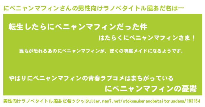 | 意味不明あだ名 | 『永久保存にべニャンマフィン』 |