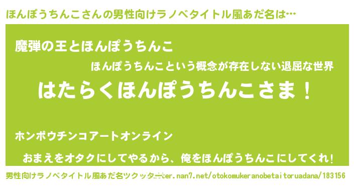 | 意味不明あだ名 | 『住所不定無職ほんぽうちんこ(81歳)』 |