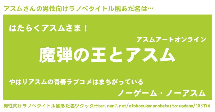 | 意味不明あだ名 | 『住所不定無職アスム(74歳)』 |