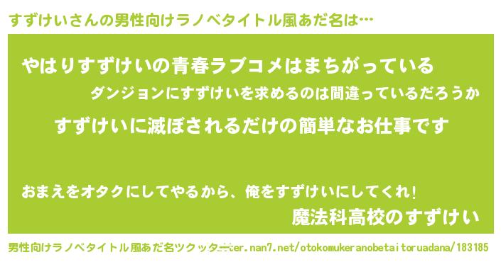| 意味不明あだ名 | 『すずけいフォーエバー』『自称すずけい』 |