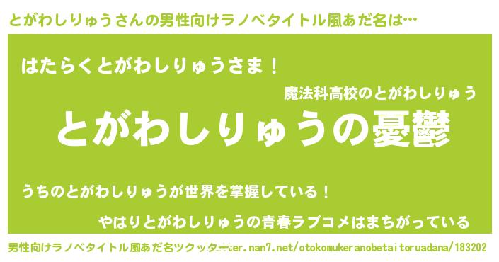 | 胡散臭い通販商品みたいなあだ名 | 『モテモテ間違いなしブレスレット…その名も「とがわしりゅう」』 |