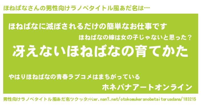 | 意味不明あだ名 | 『ペロリンほねばな』『自称ほねばな』 |