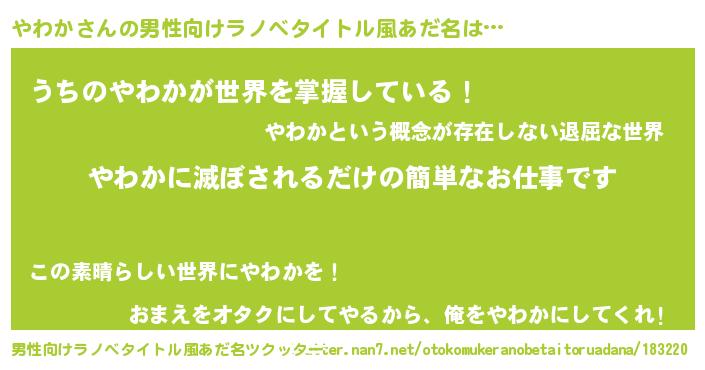| ヘコむあだ名 | 『やわか(苦笑)』『やわにー』『牛乳』 |