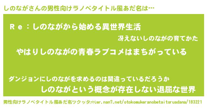 | 意味不明あだ名 | 『しのながフォーエバー』『自称しのなが』 |