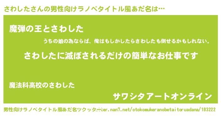 | 意味不明あだ名 | 『住所不定無職さわした(2歳)』 |