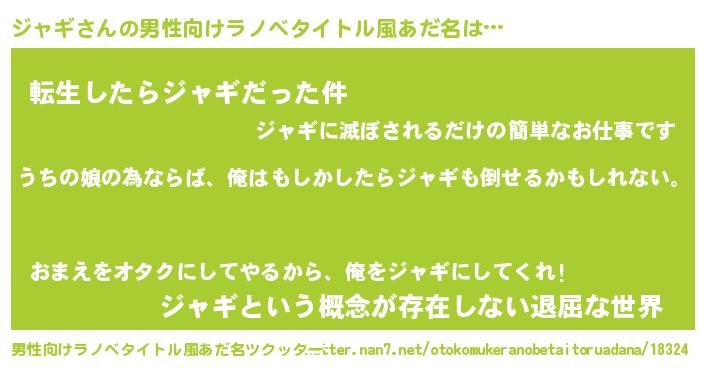 | ファンタジー風あだ名 | 『エターナルジャギー』『ジャディッシュ』 |
