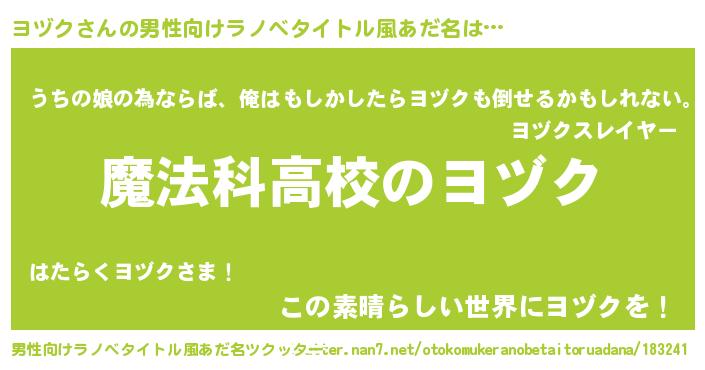 | ファンタジー風あだ名 | 『ゼヨヅトゥ』『エターナルヨヅクー』 |