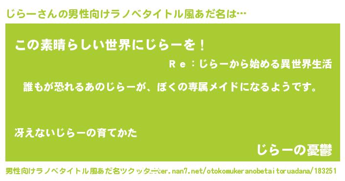 | 伝説のあだ名 | 『古文書に記された吟遊詩人じらー』 |