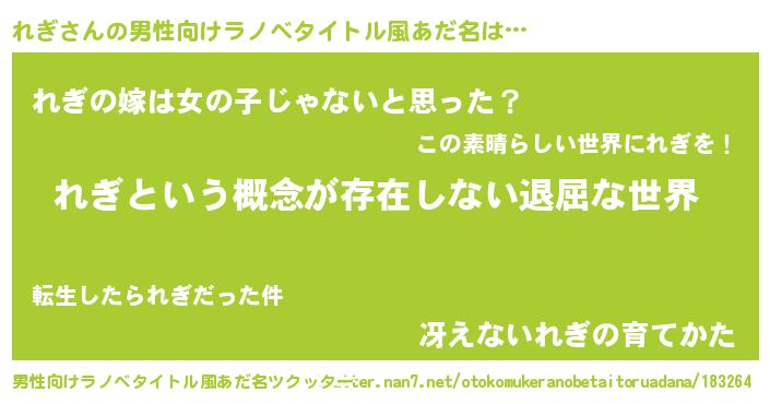| 女子向けラノベタイトル風あだ名 | 『異世界で失敗しない100のれぎ』 |