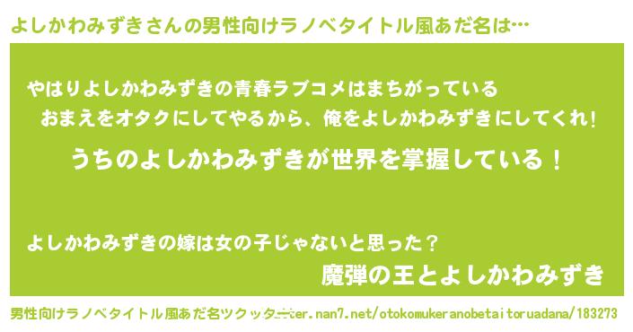 | 女子向けラノベタイトル風あだ名 | 『男装よしかわみずきの憂鬱な任務』 |