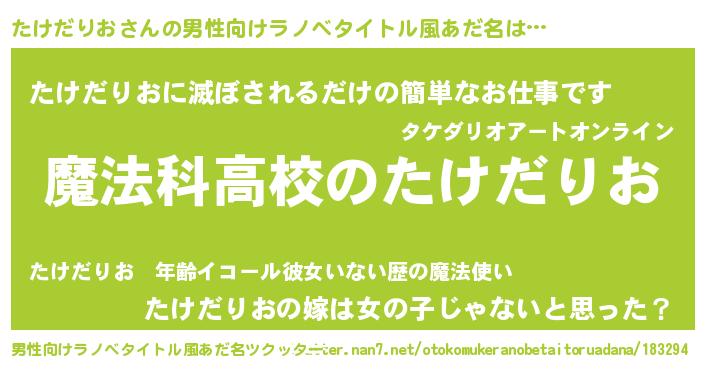 | 肩書あだ名 | 『たけだりお総統』『たけだりおリーダー』 |
