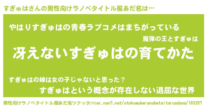 | 胡散臭い通販商品みたいなあだ名 | 『世界が平和になる高級そうな壺…その名も「すぎゅは」』 |