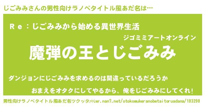 | 意味不明あだ名 | 『住所不定無職じごみみ(93歳)』 |