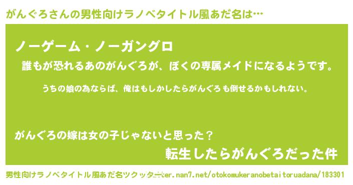 | ヒーロー風カッコイイあだ名 | 『ウルトラがんぐろマン』『ネオガングロ』 |