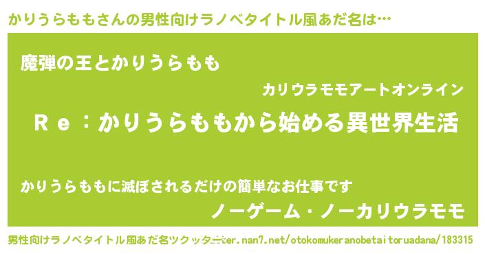 | 伝説のあだ名 | 『救世主となる錬金術士かりうらもも』 |