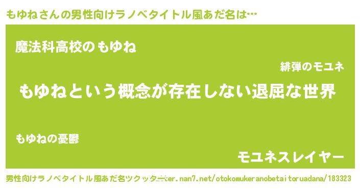 | 女子向けラノベタイトル風あだ名 | 『異世界で失敗しない100のもゆね』 |