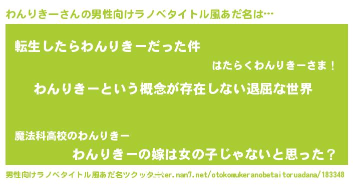 | 女子向けラノベタイトル風あだ名 | 『異世界で失敗しない100のわんりきー』 |