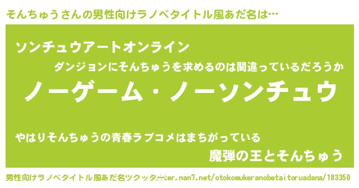| 女子向けラノベタイトル風あだ名 | 『死神そんちゅうの再婚』 |