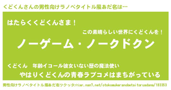 | 女子向けラノベタイトル風あだ名 | 『死神くどくんの再婚』 |