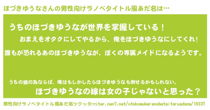 | ヘコむあだ名 | 『ほづきゆうな(爆)』『ほづお』 |