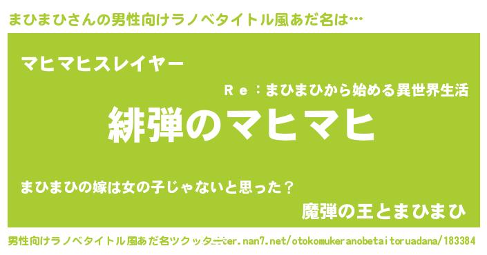| 女子向けラノベタイトル風あだ名 | 『シンデレラまひまひ家の靴箱館』 |