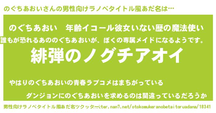 | ヒーロー風カッコイイあだ名 | 『黄金騎士ノグ』『ネオノグチアオイ』 |