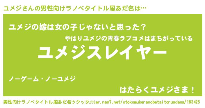 | 胡散臭い通販商品みたいなあだ名 | 『信頼と実績のネックレス…その名も「ユメジ」』 |