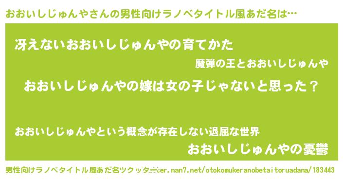 | 女子向けラノベタイトル風あだ名 | 『おおいしじゅんや様がみてる』 |