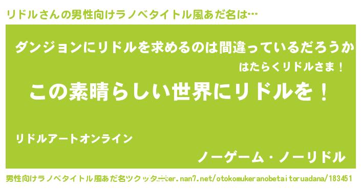 | 意味不明あだ名 | 『住所不定無職リドル(6歳)』 |
