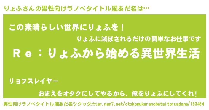 | ヘコむあだ名 | 『りょふ(爆)』『りょっ子』 |