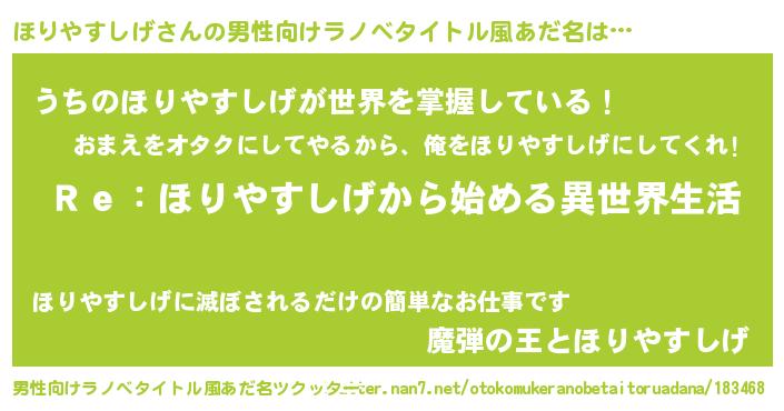 | 伝説のあだ名 | 『救世主となる技術者ほりやすしげ』 |