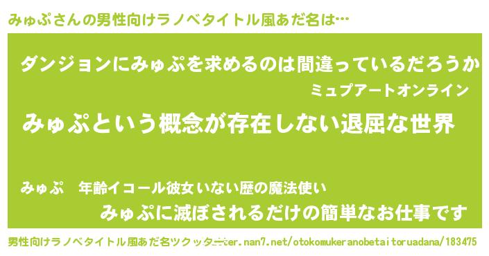ヘコむあだ名 | 『みゅぷ(小並感)』『みゅ太郎』 |