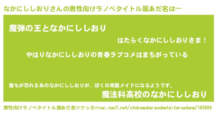 | ファンタジー風あだ名 | 『エターナルナカニシシオリー』 |