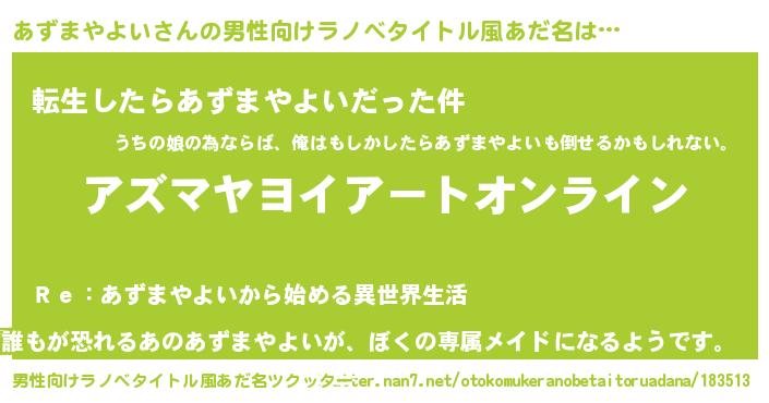 | 胡散臭い通販商品みたいなあだ名 | 『億万長者になれるブレスレット…その名も「あずまやよい」』 |