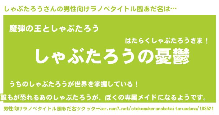 | 女子向けラノベタイトル風あだ名 | 『(仮)しゃぶたろうのやんごとなき事情』 |