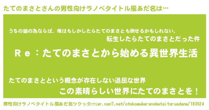 | 意味不明あだ名 | 『自称たてのまさと』 |