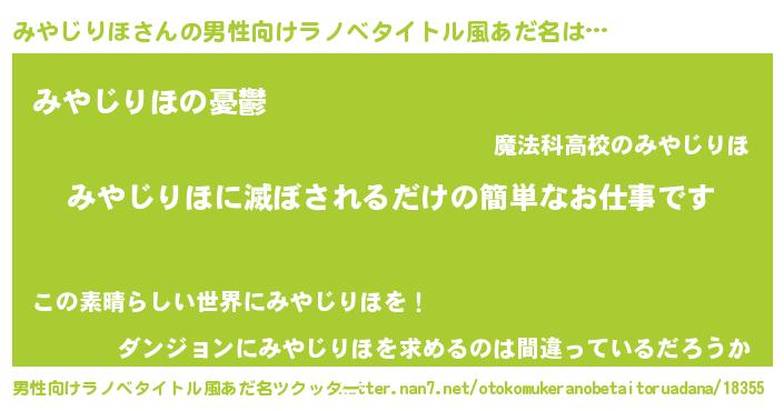 | 胡散臭い通販商品みたいなあだ名 | 『モテモテ間違いなし霊験あらたかなお札…その名も「みやじりほ」』 |