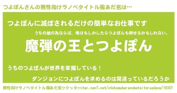 | 意味不明あだ名 | 『住所不定無職つよぽん(84歳)』 |