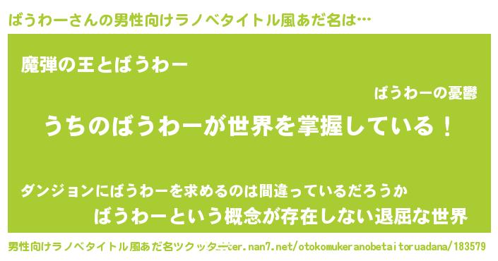 | 胡散臭い通販商品みたいなあだ名 | 『あなたにだけ特別に提供する100年もののヴィンテージワイン…その名も「ばうわー」』 |