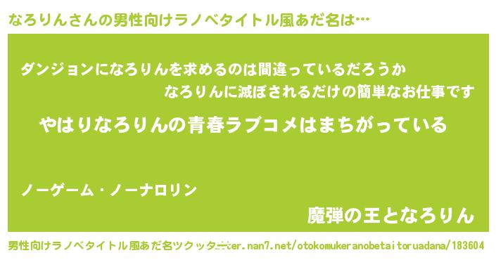 | 胡散臭い通販商品みたいなあだ名 | 『世界が平和になる高級そうな絵画…その名も「なろりん」』 |