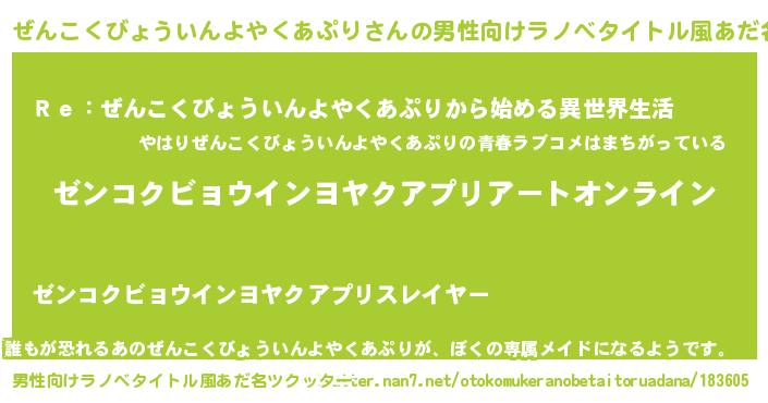 | 胡散臭い通販商品みたいなあだ名 | 『億万長者になれるブレスレット…その名も「ぜんこくびょういんよやくあぷり」』 |