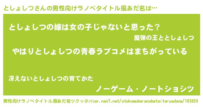 | 女子向けラノベタイトル風あだ名 | 『としょしつの雑貨屋さん』 |