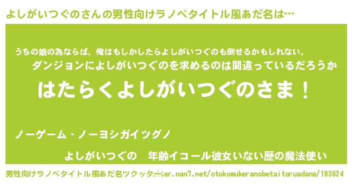 | 胡散臭い通販商品みたいなあだ名 | 『幸せが訪れる高級そうな壺…その名も「よしがいつぐの」』 |