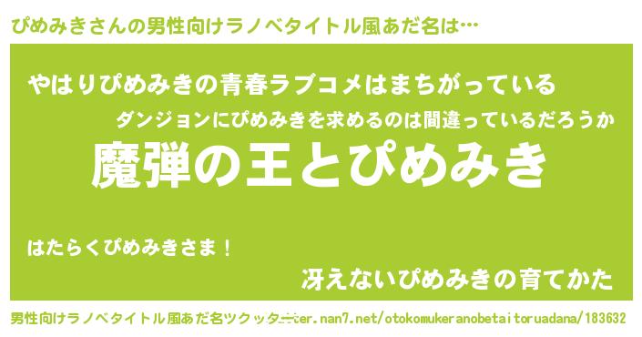 | ヒーロー風カッコイイあだ名 | 『仮面ピメダー』『ウルトラぴめみきマン』 |
