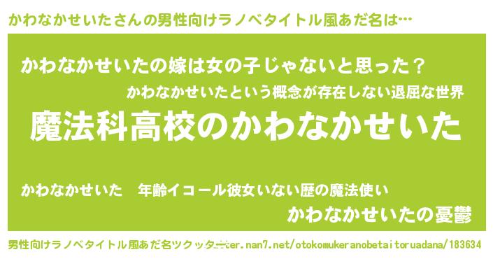 | 女子向けラノベタイトル風あだ名 | 『かわなかせいたなんてお断りですっ。』 |