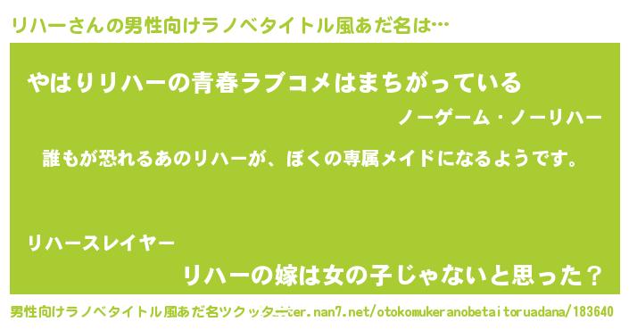 | ファンタジー風あだ名 | 『リハディッシュ』『エターナルリハーー』 |