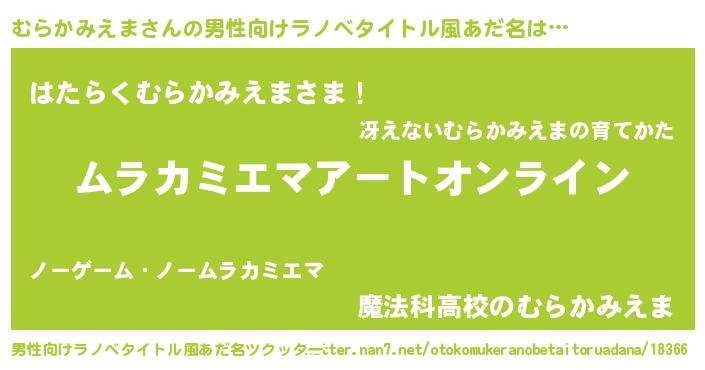 | 女子向けラノベタイトル風あだ名 | 『誰かこのむらかみえまを説明してください! ~契約から始まるウェディング~』 |
