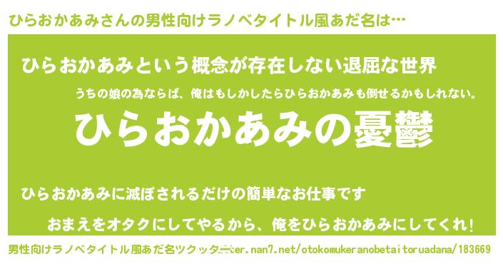 | ヘコむあだ名 | 『ひらもー』『ひらおかあみ(爆)』 |
